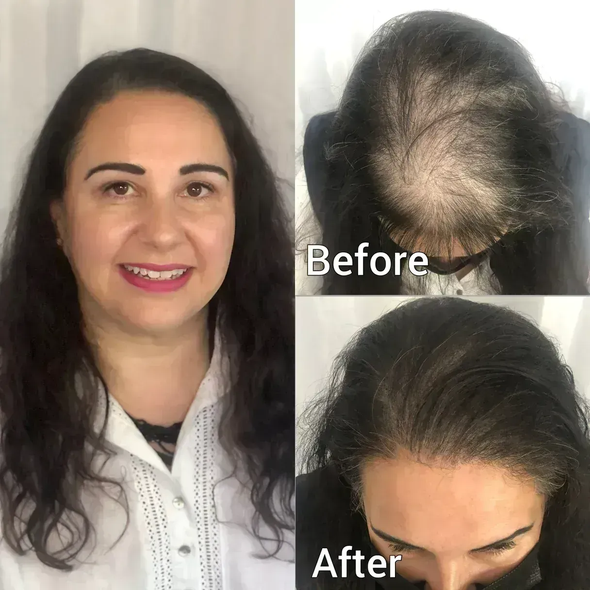 'Wow! I wish I had found Peter years ago. Having struggled with thinning/fine hair for over 20 years and having had various hair systems during that time, I just wanted to be free of wearing hairpieces, toppers and thickening powders. This has been the ideal solution for me as I can now wear my hair tied up or down, without having to be concerned about my scalp. If you take a look at the before and after's - they really do just say it all.'