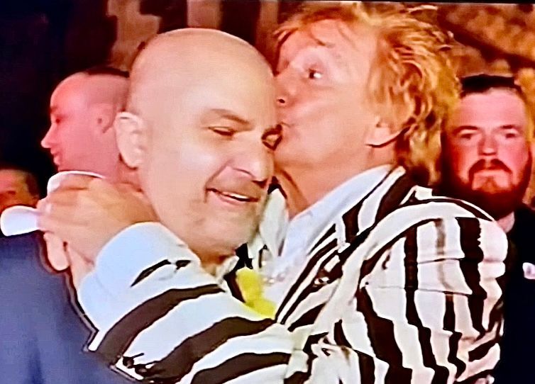 A little later I could hear a commotion going on on behind me and the gold velvet curtain. The noise was interfering with my show, since I was now singing a quiet ballad! I thought, ‘what to do?’ I’d have to tell the cameraman to keep the noise down, but at the same time I was a bit embarrassed in having to do so. I discreetly leant through the curtain and quickly gestured to keep the noise down, while not looking at any of their faces to avoid any further embarrassment. (I guess Rod was making the commotion but I still didn’t see him 😂.)